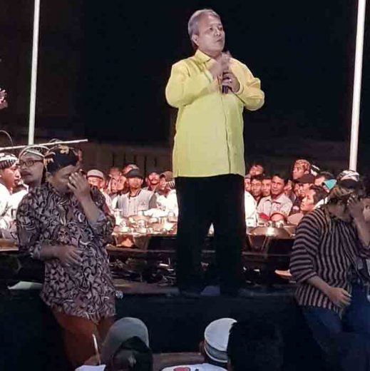 Nyanyian dengan syair seperti itu baru berhenti setelah Arinal dan rmbongan yang terdiri atas para petinggi Partai Golkar duduk di kursi yang sudah disediakan. Beberapa saat kemudian, Arinal pun maju menghadap ke arah penonton untuk menyampaikan sambukan dan menyapa para penonton.