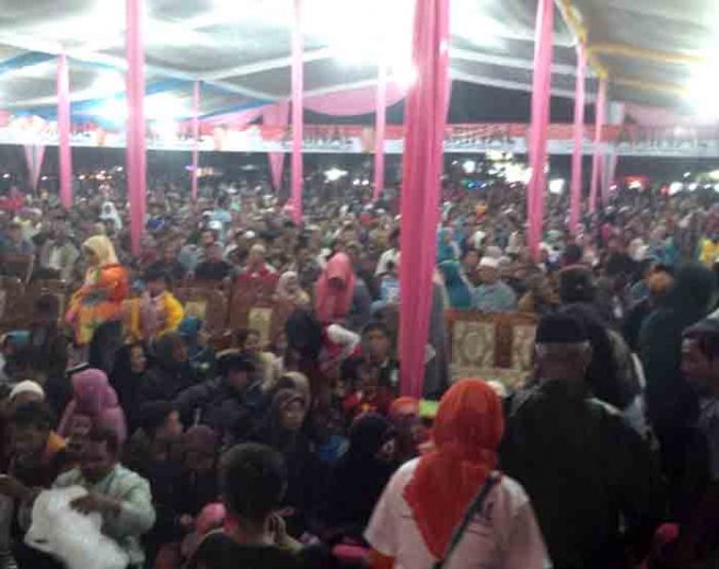 Sekitar pukul 22.00 WIB pembawa acara mengumumkan Arinal Djunaidi dan rombongan tiba. Begitu memasuki lapangan, sambil berjalan menuju kursi di depan panggung, Arinal menyalami penonton satu per satu. Sementara pembawa acara mengajak para penonton menyanyikan lagu dengan syair: Arinal siapa yang punya/Arinal siapa yang punya/Yang punya kita semua//Arinal siapa yang punya/Arinal siapa yang punya/Yang punya rakyat Lampung//.