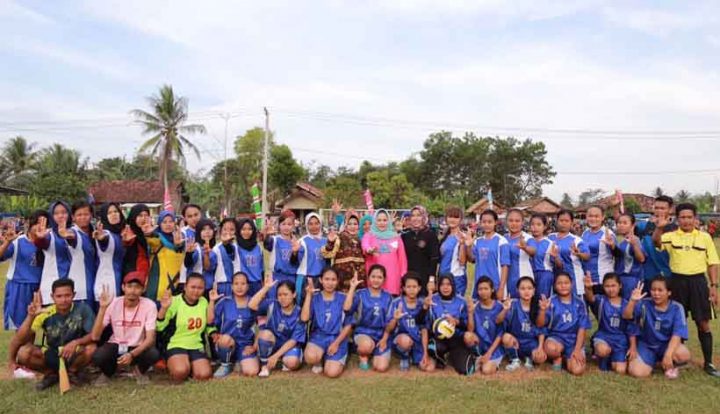 TERASLAMPUNG.COM — Ketua Tim Penggerak PKK Provinsi Lampung, Ny. Aprilani Yustin Ridho Ficardo membuka Turnamen Sepak Bola Wanita di Dusun Sido Mukti, Desa Muara Putih, Kecamatan Natar, Lampung Selatan, Minggu (1/10/2017).
