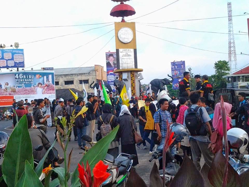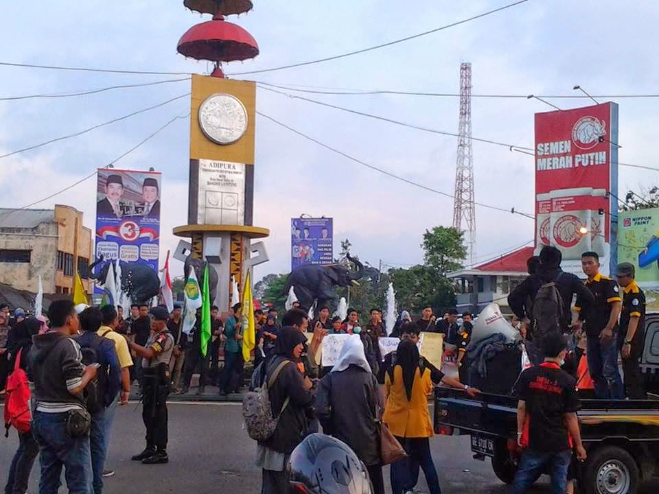 Bandarlampung—Sedikitnya 200an mahasiswa yang mengatasnamakan Aliansi BEM Lampung (ABL) menggelar aksi damai di Tugu Adipura, Kamis (3/4) sekitar pukul 16.00.