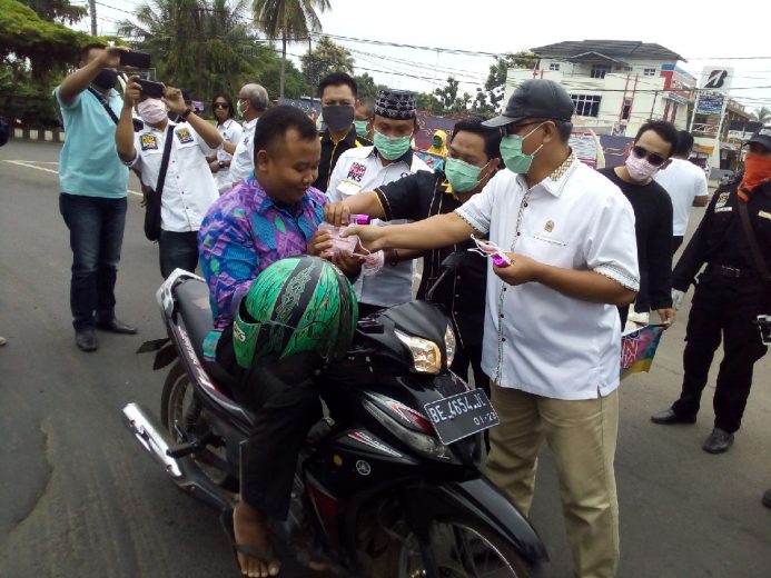 Kotabumi–PKS Lampung Utara membagikan sejumlah alat pelindung diri dan masker serta Hand sanitizer kepada tenaga medis dan para pengguna jalan, Kamis (2/4/2020) sekitar pukul 09.30 WIB.