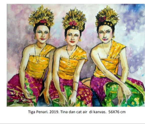 “Ada juga karya cat air dan cat minyak di atas kanvas. Bahkan yang digital print, dalam arti karya sketsa yang saya besarkan, dikompilasikan, lalu diprint (sambil merespon teknologi digital yang lagi marak,” rincinya.