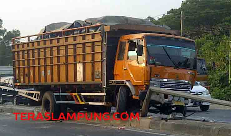 tepatnya depan SMA 5 Bandarlampung, tiba-tiba ban bagian depan sebelah kiri pecah akibatnya truk yang dikendarainya oleng. Meski berjalan dengan kecepatan hanya 40-50 kilometer perjam, truk tidak bisa dikendalikan hingga menabrak dua lampu jalan.