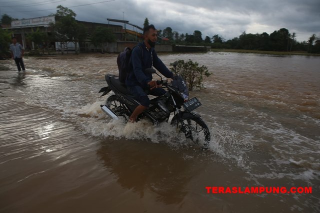 TERASLAMPUNG.COM, LAMPUNG SELATAN—Hujan intensitas tinggi yang mengguyur wilayah Kecamatan Sidomulyo, Katibung dan Candipuro, Kabupaten Lampung Selatan, mulai Rabu malam sekira pukul 22.00 WIB hingga Kamis pagi (27/10/2022), menyebabkan ratusan rumah warga terendam banjir hingga menelan korban jiwa serta beberapa akses jalan utama tidak bisa dilalui kendaraan.
