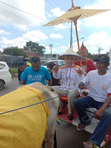TERASLAMPUNG.COM — Bakal calon Walikota /Wakil Walikota Bandarampung Irjen Pol Ike Edwin dan dr. Zam Zanaria menunaikan janjinya untuk naik gerobak sapi dari Lamban Kuning — kediaman Ike di Bandarlampung — menuju Kantor KPU Bandarla...