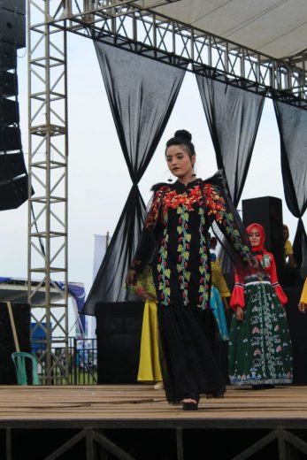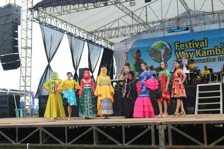 TERASLAMPUNG.COM — Dengan balutan busana kreasi para perancang asli Lampung Timur, belasan muli cantik Lampung Timur berlenggak-lenggok di atas panggung di Lapangan Taman Nasional Way Kambas, Sabtu petang (11/11/2017). Sore itu mereka menjadi bintang pamungkas acara pembukaan Festival Way Kambas 2017.