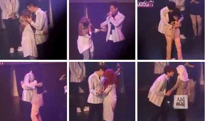 | Adegan seorang remaja berhijab, warga Malaysia, beradegan mesra dengan artis idolanya (dok/kompasiana) |