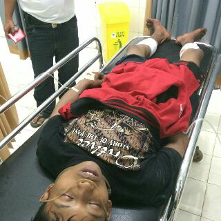 | Tersangka Wisniu harus dirawat di rumah sakit karena kedua kakinya ditembak polisi saat hendak ditangkap, Selasa (14/7). |