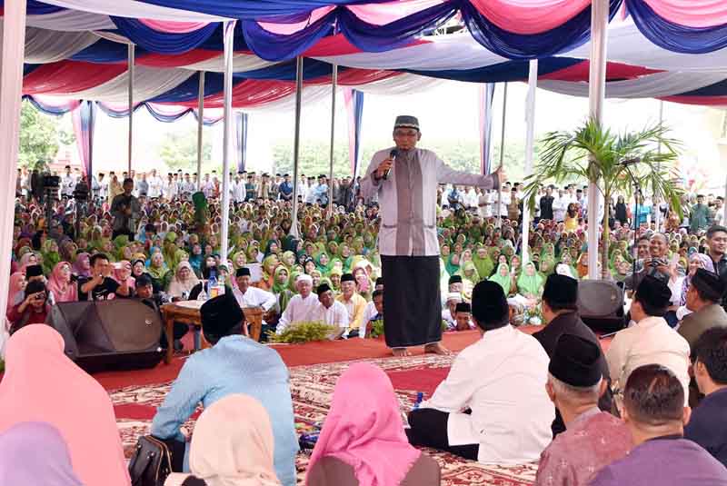 ”Tabligh Akbar ini merupakan salah satu upaya untuk membangun persatuan dan kesatuan umat baik dalam menegakkan syariah maupun dalam membangun komitmen sosial. Semoga, dengan kegiatan ini, tingkat keimanan dan ketaqwaan serta persaudaran kita akan tetap terjaga,” harap orang nomor satu di bumi Ragem Tunas Lampung ini.
