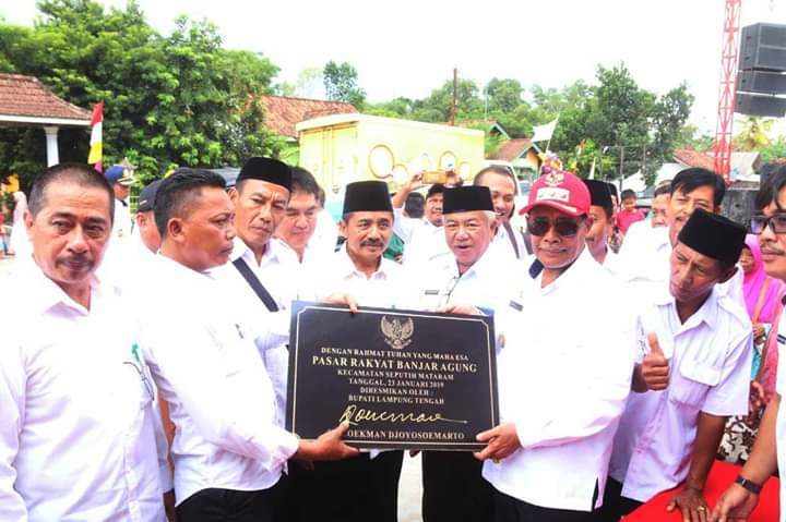 Kemudian bupati Lamteng Loekman djoyosoemarto menanda tangani prasasti dan surat perjanjian Kontrak Kerjasama antara pemerintah kabupaten lampung tengah dengan kepala Kampung Banjaragung, Kecamatan Seputih mataram,