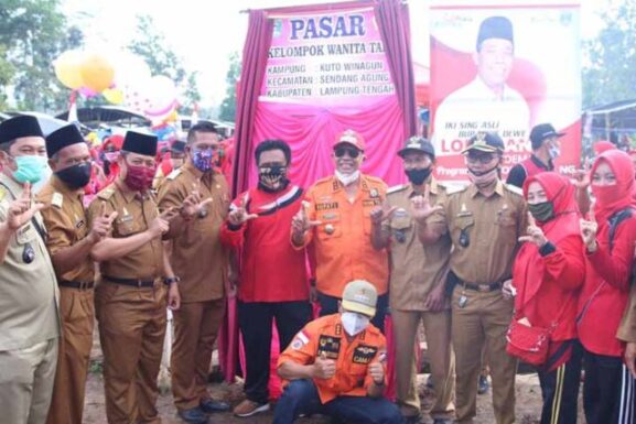 LAMPUNG TENGAH — Bupati Lampung Tengah (Lamteng) Loekman Djoyosoemarto meresmikan Pasar KWT (Kelompok Wanita Tani) Kutowinangun, Kecamatan Sendang Agung, Selasa (21/7/2020).