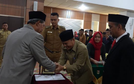 TERASLAMPUNG.COM — Bupati Lampung Tengah (Lamteng) Loekman Djoyosoemarto, melantik dan mengambil sumpah Ir. Zulkifli S.E., M.M. sebagai Penjabat Sekretaris Daerah (Sekda) Kabupaten Lampung Tengah, di Aula Siger Mas Lantai IV, Kantor Pemkab Lampung Tengah, Selasa (14/01/2020).