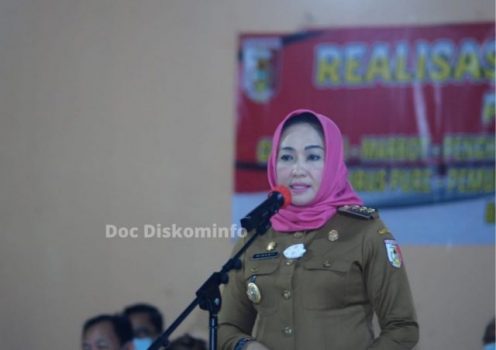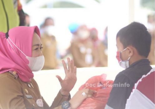 TERASLAMPUNG.COM — Merealisasian 25 Program BMW, Bupati Tulangbawang Winarti menyerahkan insentif kepada tenaga kesehatan dan honorer di SMP Negeri 1 Sidoharjo, Kecamatan Penawartama, Selasa (4/5/2021).