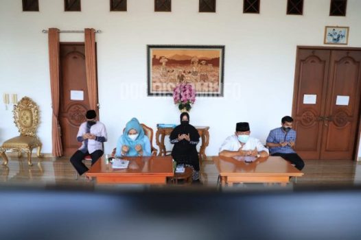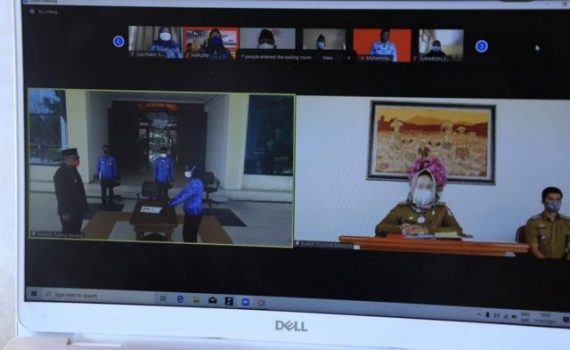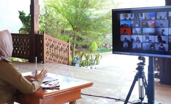 TERASLAMPUNG.COM –- Bupati Tulangbawang Winarti melaksanakan Doa bersama Tenaga Kesehatan (Nakes), Warga dan Aparatur Sipil Negara (ASN) yang gugur akibat Covid-19 serta Doa untuk Keselamatan Bersama warga Tulangbawang, Lampung, Indonesia, Kamis (28/7/2021). Acara itu digelar secara virtual.