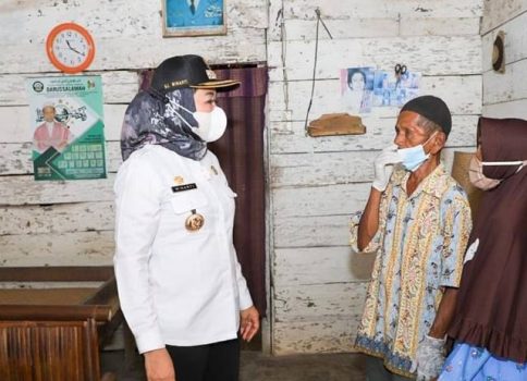 TERASLAMPUNG.COM , DENTE TELADAS — Bupati TulangBawang, Winarti, menyerahkan secara langsung bantuan Realisasi 25 Program Bersama Melayani Warga (BMW) dan meninjau vaksinasi Covid-19 di Balai Kampung Dente Telada, Kecamatan Dente Teladas, Rabu (27/10/2021).