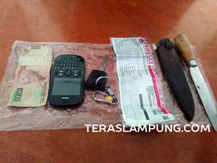 Dari penangkapan tersangka, polisi menyita barang bukti sebilah senjata tajam pisau yang dipakai tersangka untuk melukai korban, dan barang hasil rampasan milik korban satu unit sepeda motor Honda Vario warna putih BE 4390 AA, STNK motor, satu unit ponsel merk Nokia 200 dan uang tunai Rp 5000.
