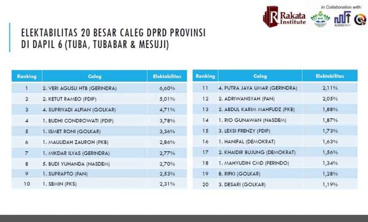 Perkiraan ini baru berdasarkan hitung cepat Rakata Institute. Perolehan suara real masih harus menunggu hasil penghitungan KPU.