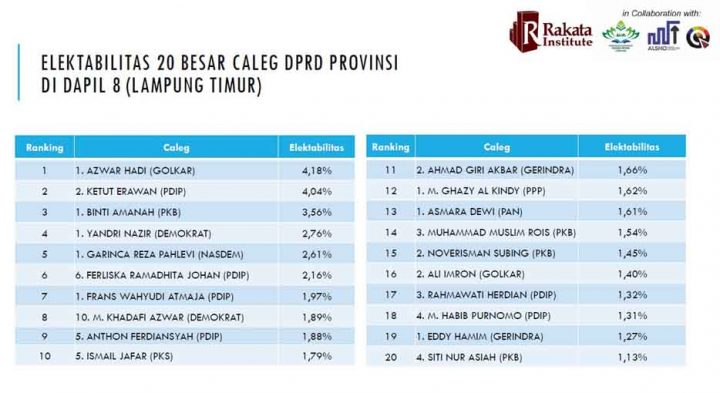 Caleg DPRD Lampung Dapil Lampung Timur yang Berpeluang Meraih Kursi di Pemilu 2019