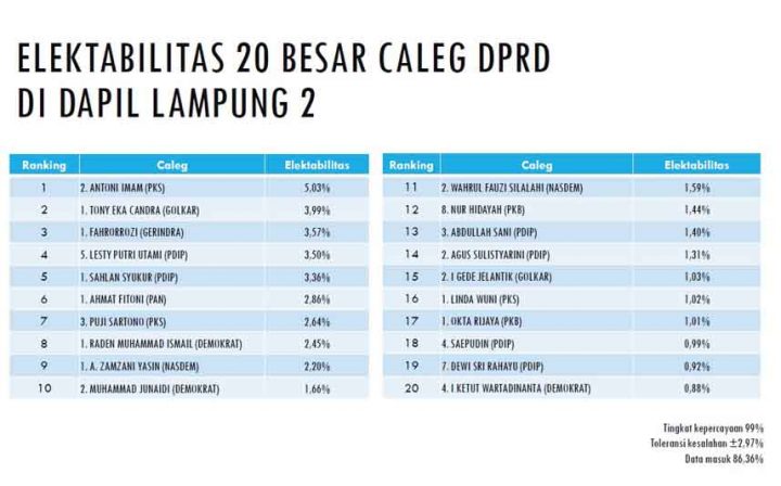 Caleg DPRD Lampung Dapil Lamsel yang Berpeluang Meraih Kursi di Pemilu 2019
