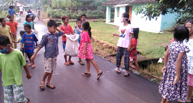 Pagi itu rupanya mereka diajak Pak Kadus bekerja bakti membersihkan sampah. Puluhan anak-anak itu begitu semangat melakukan aksi bersih-bersih. Mereka berjalan mengelilingi pedukuhan (Dusun) sembari membawa karung untuk tempat sampah.