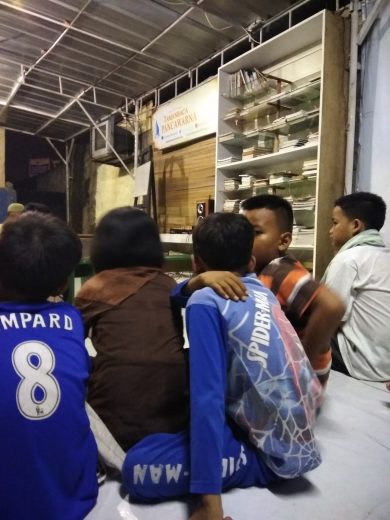TERASLAMPUNG.COM — Taman Baca Pancawarna di Jalan Pangeran Antasari, Gang Mulya Jaya, Kelurahan Kedamaian, Bandarlampung, punya cara unik merayakan Peringatan Hari Anak Nasional 2017. Secara swadaya, taman bacaan yang terletak persis di sudut gang itu menggelar aneka lomba yang melibatkan puluhan anak.