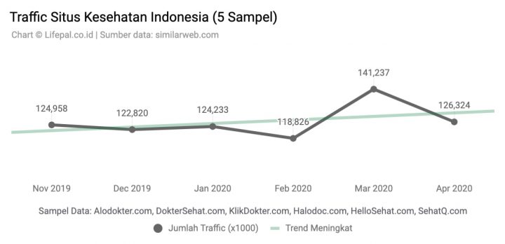 Tren kenaikan jumlah pengunjung juga ditunjukkan oleh situs-situs kesehatan. Lima situs yang dijadikan sampel, yakni Alodokter.com, DokterSehat.com, KlikDokter.com, Halodoc.com, HelloSehat.com, dan SehatQ,com memperlihatkan grafik kunjungan yang meningkat.
