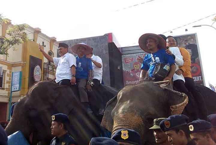 Seperti yang direncanakan sebelumnya, Mustafa dan Ahmad Jajuli datang ke Kantor KPU Lampung di Jalan Gajahmada Bandarlampung dengan menunggang gajah. Keduanya dibantu seorang pawang gajah sehingga perjalanan menuju Kantor KPU Lampung lancar.