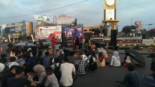 BANDARLAMPUNG — Lembaga Bantuan Hukum (LBH) Bandarlampung dan Aliansi Mahasiswa menggandeng para musisi jalanan yang tergabung dalam Komunitas Seniman Jalanan Lampung (Kosela) menggelar konser solidaritas dengan tema “Panggung Rakyat” di Bundaran Tugu Adipura, Jumat 10 Agustus 2018 sore.
