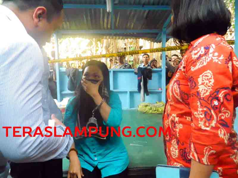 Zaianal Asikin/Teraslampung.com Camelia memeragakan adegan terakhir pembunuhan Sofyan, di depan kamar kosnya, dalam prarekonstruksi, Rabu (16/9). BANDARLAMPUNG-Selain tersangka Camelia (26) warga Pecoh Raya, Telukbetung Selatan. Penyidik Sat...