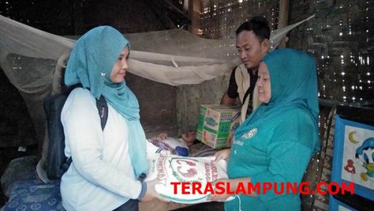 LAMPUNG SELATAN — Dinas Sosial (Dinsos) Lampung Selatan dan pendamping Program Keluarga Harapan (PKH) Kecamatan Sidomulyo, Lampung selatan memberikan bantuan kursi roda, sembako dan uang tunai kepada Keluarga Penerima Manfaat (KPM) di Dusun Way Galih, Desa Bandardalam, Kecamatan Sidomulyo, Lampung Selatan, Rabu (3/4/2019).