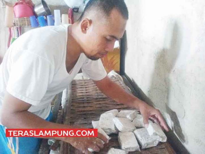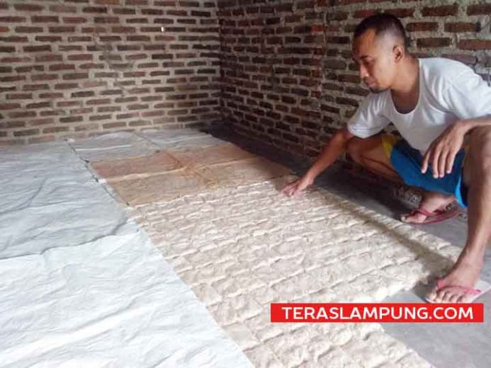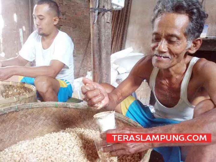 Saat berkunjung di rumah Mbah Tug, Selasa (9/1/2018), Teraslampung.com melihat proses Mbah Tug dan anaknya membuat tempe.