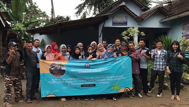 Kegiatan “Aplikasi Teknologi Budidaya Ikan dan Sayuran Organik dengan Floating Raft Aquaponic System pada Kelompok Pembudidaya Ikan di Kecamatan Pringsewu, Lampung” merupakan kegiatan transfer teknologi kepada masyarakat, yang sejalan dengan salah satu visi LPPM Unila. Teknologi yang ditransfer adalah teknologi akuaponik dengan sistem Floating Raft Aquaponic. Floating Raft Aquaponic System adalah sistem akuaponik terapung yang memiliki beberapa keuntungan yaitu tanpa menggunakan listrik, dan biaya yang dibutuhkan lebih rendah dibandingkan sistem akuaponik pada umumnya.