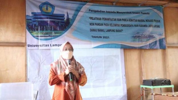 Merespons keluhan para pembudidaya ikan di Danau Ranau, dosen Jurusan Perikanan dan Kelautan (PiK), Fakultas Pertanian (FP) Universitas Lampung (Unila) pada Sabtu, 10 Juli 2021, langsung turun ke lapangan untuk memberikan pelatihan pemanfaatan ikan mati menjadi produk nonpangan.