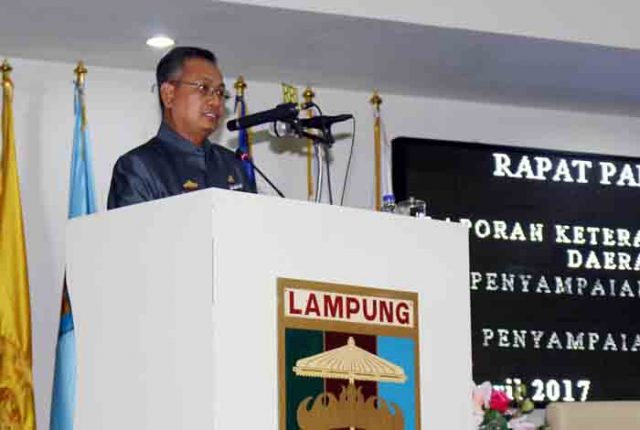 TERASLAMPUNG.COM — DPRD Lampung menggelar Rapat Paripurna DPRD Provinsi Lampung dalam rangka Penyampaian Laporan Keterangan Pertanggungjawaba (LKPJ) Kepala Daerah Tahun Anggaran 2016, di Ruang Sidang DPRD Provinsi Lampung, Rabu (26/4). Dalam rapat paripurna tersebut Gubernur Lampung Ridho Ficardo diwakili Sekretaris Daerah Provinsi Lampung, Sutono.