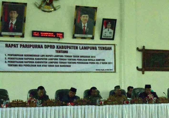Supriyanto/Teraslampung.com Rapat Paripurna DPRD Lampung Tengah untuk mengesahkan Perda Pemilihan Kampung, di ruang sidang DPRD Lampung Tengah di Gunungsugih, Senin (25/5). GUNUNGSUGIH- Setelah melalui pembahasan secara maraton dan cukup alo...