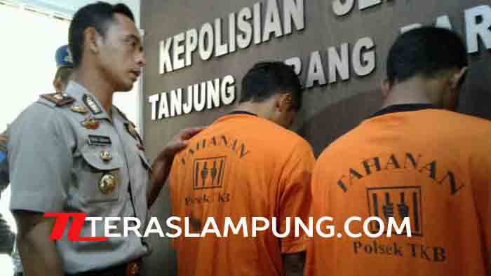 Zainal Asikin/Teraslampung.com Tersangka Sigit dan Heri ketika diperiksa di Polsek Tanjungkarang Barat, Bandarlampung, Minggu (27/3). BANDARLAMPUNG – Kapolsekta Tanjungkarang Barat, Kompol Heru Adrian mengatakan, tersangka Sigit dan He...