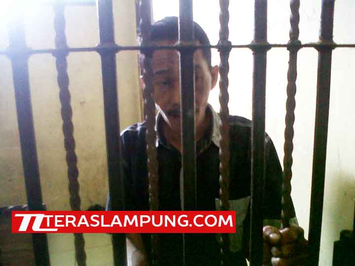 Feaby/Teraslampung.com Tersangka RR di ruang tahanan Polsek Kotabumi Utara, Jumat (12/2). Ia dijebloskan ke sel setelah diamankan warga karena mengedarkan uang palsu pecahan Rp100.000. KOTABUMI– Lantaran mengedarkan uang palsu p...