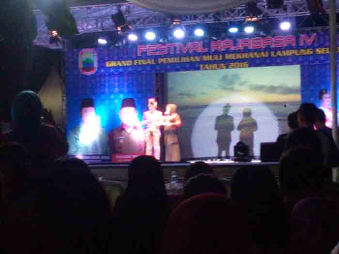 KALIANDA, Teraslampung.com – Kawasan Wisata Kuliner Dermaga Bom, Kalianda, Lampung Selatan, malam ini, Jumat (13/5), dipadati ribuan masyarakat dari berbagai penjuru wilayah, di kabupaten serambi pulau sumatera ini untuk menyaksikan acara grand final pemilihan muli-mekhanai Lampung Selatan, dalam rangka Pestival Rajabasa IV tahun 2016.