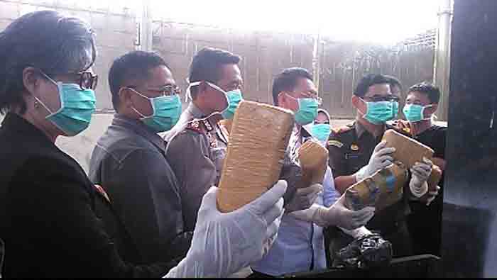 Berikut ini foto-foto pemusnahan barang bukti narkoba yang dilakukan Kejaksaan Negeri Bandarlampung, Rabu (28/12/2016).