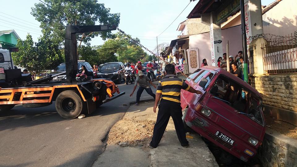 Belum diketahui secara pasti penyebab angkot itu nyungsep; apakah karena si sopir mengendarai dalam kondisi mengantuk atau ngebut untuk ‘mengejar’ setoran.