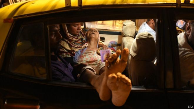 Korban gelombamg panas di Karachi sedang dievakuasi (EPA/bbc.co.uk) |
