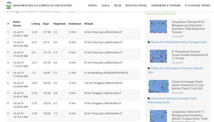 Sementara itu, sejak pukul 18.10 WIT hingga Senin dini hari (15/7/2019) gempa susulan sudah terjadi belasan kali. Sebanyak delapan kali di antaranya berkekuatan di atas 5 SR.