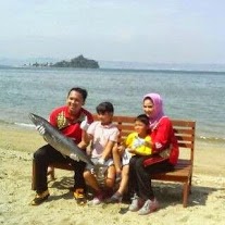 | Gubernur Lampung M.Ridho Ficardo bersama kelurga di Pantai Qiun Arta, Sabtu (9/5) mengajak masyarakat Lampung Gemar makan ikan . |