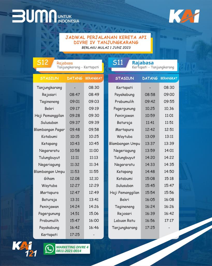 Berikut update jadwal perjalanan Kereta Api di wilayah Divre IV Tanjungkarang per 1 Juni 2023 sebagai berikut :