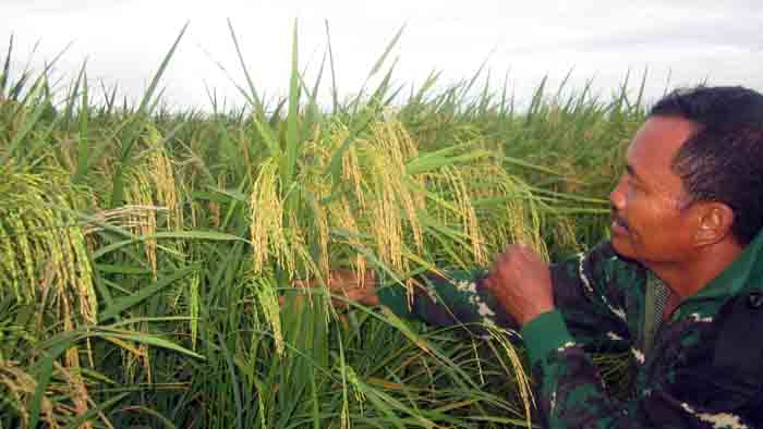 | Padi Sertani yang benihnya dihasilkan Surono Danu, warga Desa Nambah Dadi, Lampung Tengah, tepukti tahan terhadap serangan hama dan biaya pemeliharaanya murah. (Foto: Istimewa/Walhi) |