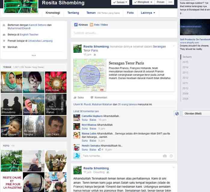 Horor Paris, Warga Lampung Ini Sebarkan ‘Cek Keselamatan’ Dirinya di Facebook