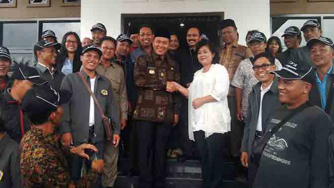 Bupati Karang Asem datang bersama puluhan anggota Kelompok Tani Nelayan Andalan (KTNA). Tiba di rumah dinas Bupati Lamteng, rombongan disambut Bupati Lamteng, Mustafa.