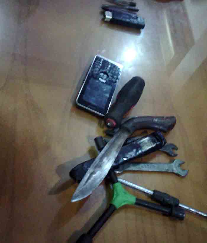 Dari penangkapan tersangka, polisi menyita beberapa barang bukti. Diantaranya adalah, sebilah senjata tajam jenis badik, satu set kunci letter T, beberapa kunci-kunci, satu buah obeng dan satu buah tas warna hitam.