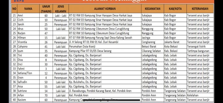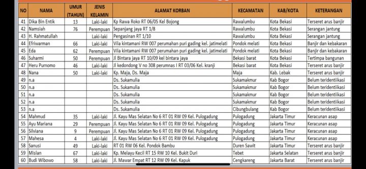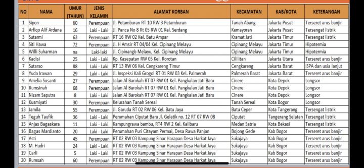 Ini Daftar Nama Korban Meninggal Banjir-Longsor di Jabodetabek dan Banten