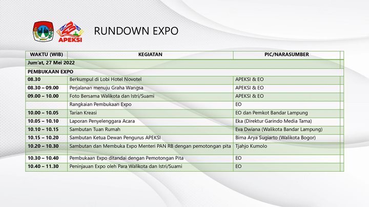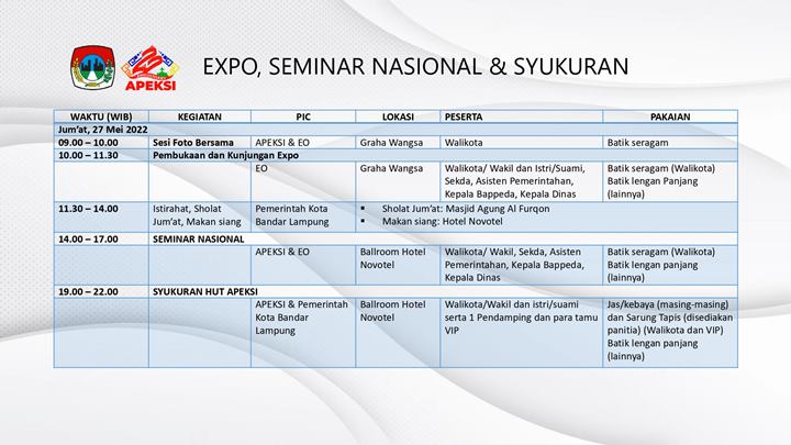 Ini Jadwal Lengkap Acara HUT ke-22 Apeksi di Bandarlampung